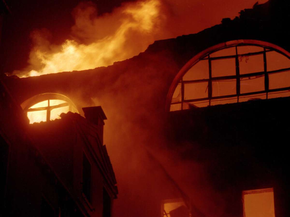 O alerta foi dado por uma lancha da polícia que patrulhava o canal ao redor do edifício. Em poucos minutos, uma fumaça densa, labaredas, estrondos e desabamentos atraíram moradores, trabalhadores e amantes da ópera ao Campo San Fantin.