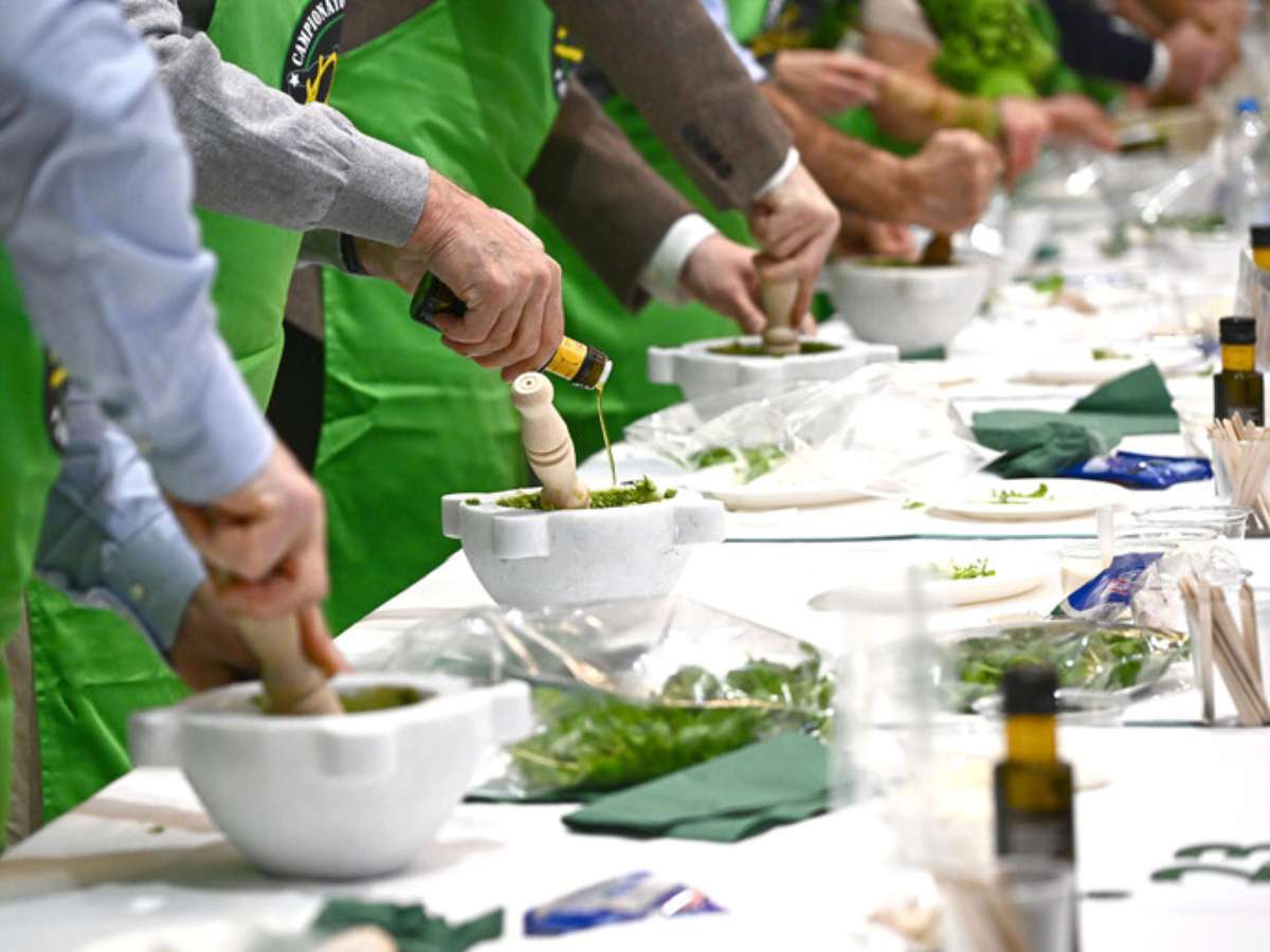 A italiana Carla Pensa, de 85 anos, é a nova campeã do mundo de pesto genovês feito com pilão. O anúncio foi feito neste sábado (21) pela prefeita de Gênova, Silvia Salis.