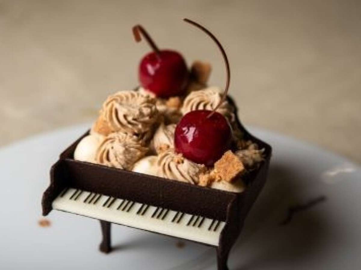 A confeiteira japonesa Aya Okada, de 29 anos e natural de Ishikawa, conquistou a medalha de ouro com um tiramisù em formato de piano de cauda, decorado com cerejas marrasquino e amarena.