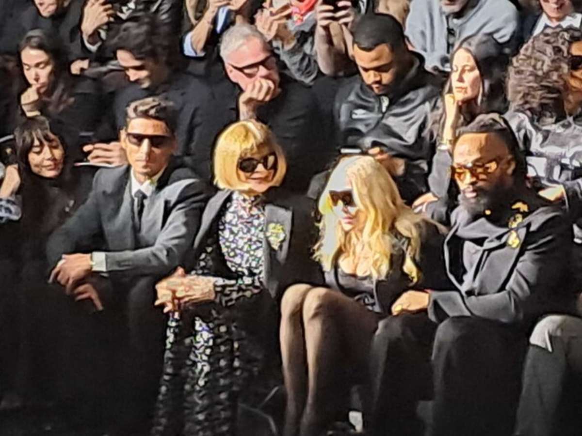 A diva do pop sentou-se na primeira fila para assistir ao desfile, ao lado de Anna Wintour, lendária ex-editora da Vogue americana, em um momento que reuniu duas das figuras mais influentes da moda mundial.