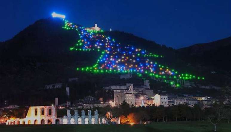 A maior árvore de Natal do mundo foi acesa na cidade de Gubbio, aos pés do Monte Ingino, no centro da Itália, depois de levar quatro meses para ser montada. A árvore natalina possui 750 metros de altura, 350 metros de largura e se estende por uma área que corresponde a pouco menos de 30 campos de futebol. Somente a estrela cadente, localizada no topo, tem cerca de mil metros. Os 950 pontos de iluminação estão ligados a 7500 metros de cabos elétricos ligados a 1350 plugues. Toda a árvore é alimentada por luzes de baixo consumo, que usam apenas 35Kw. Ao todo, são 250 luzes amarelas utilizadas no topo, 300 para criar a imagem da árvore e 400 coloridas para preencher a decoração. A árvore é montada há 39 anos e desde 1991 é reconhecida pelo Guinness Book of Records como a maior árvore de Natal do mundo.