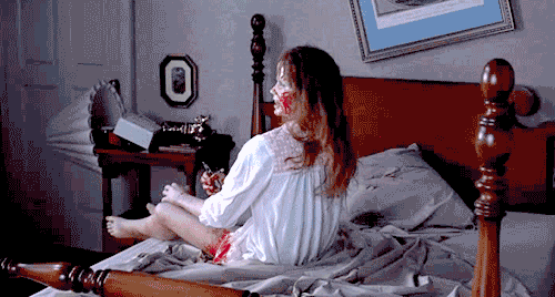 Uma criança possuída por um demônio e precisa ser exorcizada para se livrar do terror. Na cena, a criança possuída assusta a mãe com seu comportamento 'estranho'