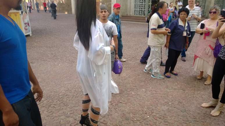 Modelo causa alvoroço em Feira do Livro ao aparecer quase nua