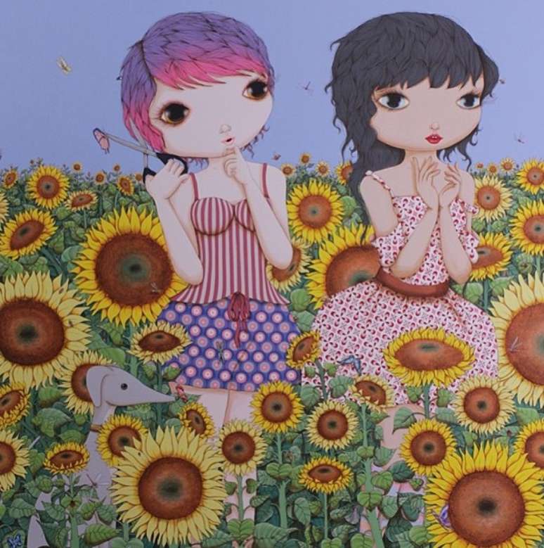 A artista plástica Nina Pandolfo abriu na última semana sua terceira exposição individual na Galeria Leme, em São Paulo. Casada com Otávio Pandolfo, um dos integrantes da dupla Osgemeos, a artista é só delicadeza em suas telas, bonecas e esculturas. É impossível não se sentir dentro de um conto de fadas, um verdadeiro universo lúdico e fantástico, ao entrar nas salas de sua mostra na capital paulista.