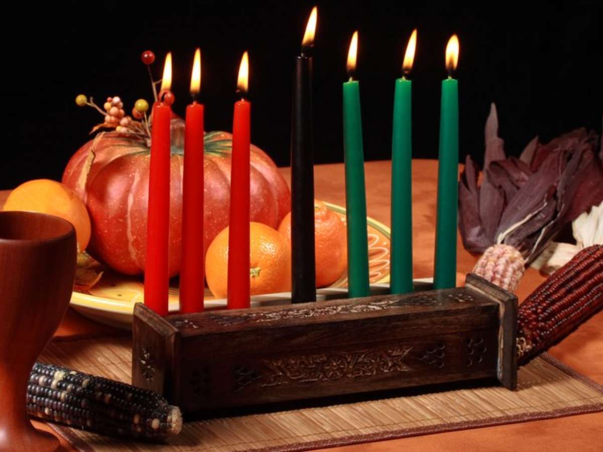 Se no Natal a festividade é personificada na figura do Papai Noel, no Kwanzaa toda a simbologia é representada em um candelabro, chamado de Kinara. Nele, sete velas - três vermelhas, três verdes e uma preta, no meio - representam cada um dos princípios.
