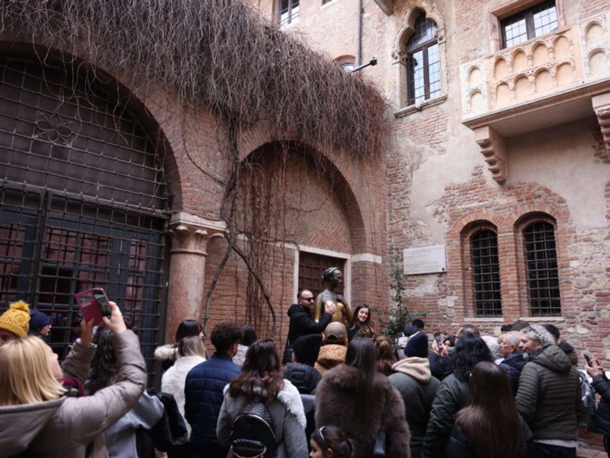 Na Via Cappello, onde fica o famoso Pátio de Julieta, turistas enfrentam longas esperas ? de até 30 minutos ? até mesmo para conseguir reservar online a nova entrada paga no local. Os ingressos para a Casa de Julieta e o próprio pátio já estavam esgotados desde a tarde do último sábado (4).