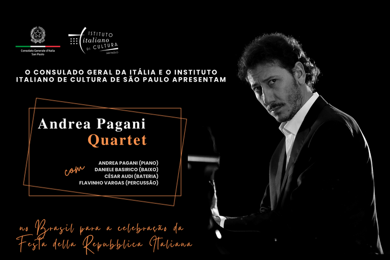 O pianista, compositor e arranjador italiano Andrea Pagani realizará nos dias 3 e 5 de junho, em São Paulo, sua primeira turnê no Brasil e participará das celebrações da Festa della Repubblica.