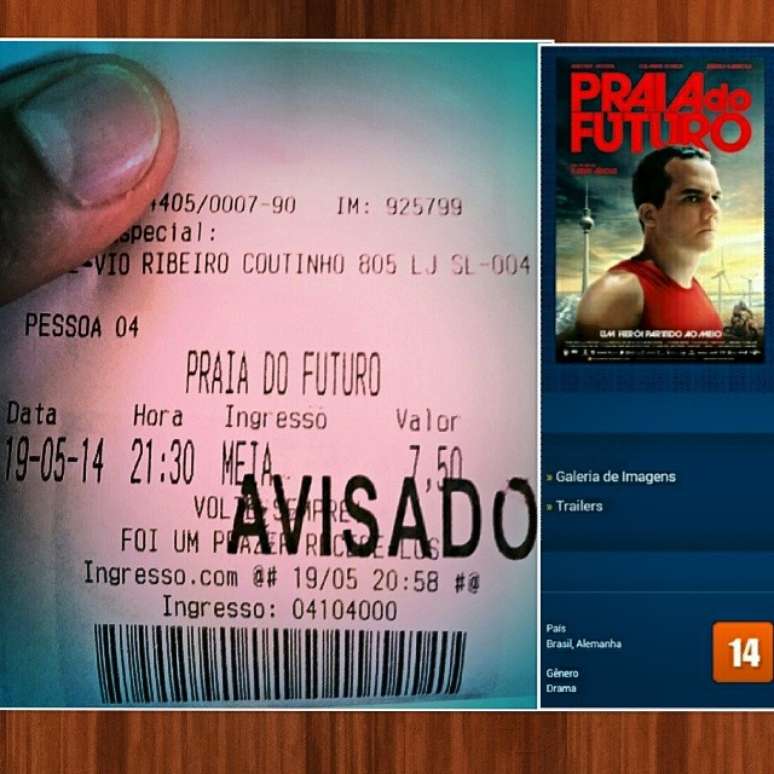 “Ao comprar o ingresso do #folia #PraiadoFuturo fui questionado com a seguinte frase do atendente do #Cinépolis #JoãoPessoa/PB: ‘senhor, tem certeza que deseja ver esse filme? Pois ele contém cenas de sexo homossexual’. Eu disse: ‘sem problemas’. Então recebi meu ingresso com esse carimbo de AVISADO. Na hora fiquei surpreso e com um misto de dúvidas... Uma das é: isso é para os desavisados e preconceituosos, não pedir o dinheiro de volta? Com relação ao filme, ele é sensível, romântico, dramático e ‘questionante’!”, escreveu Iarlley na publicação em seu Facebook.