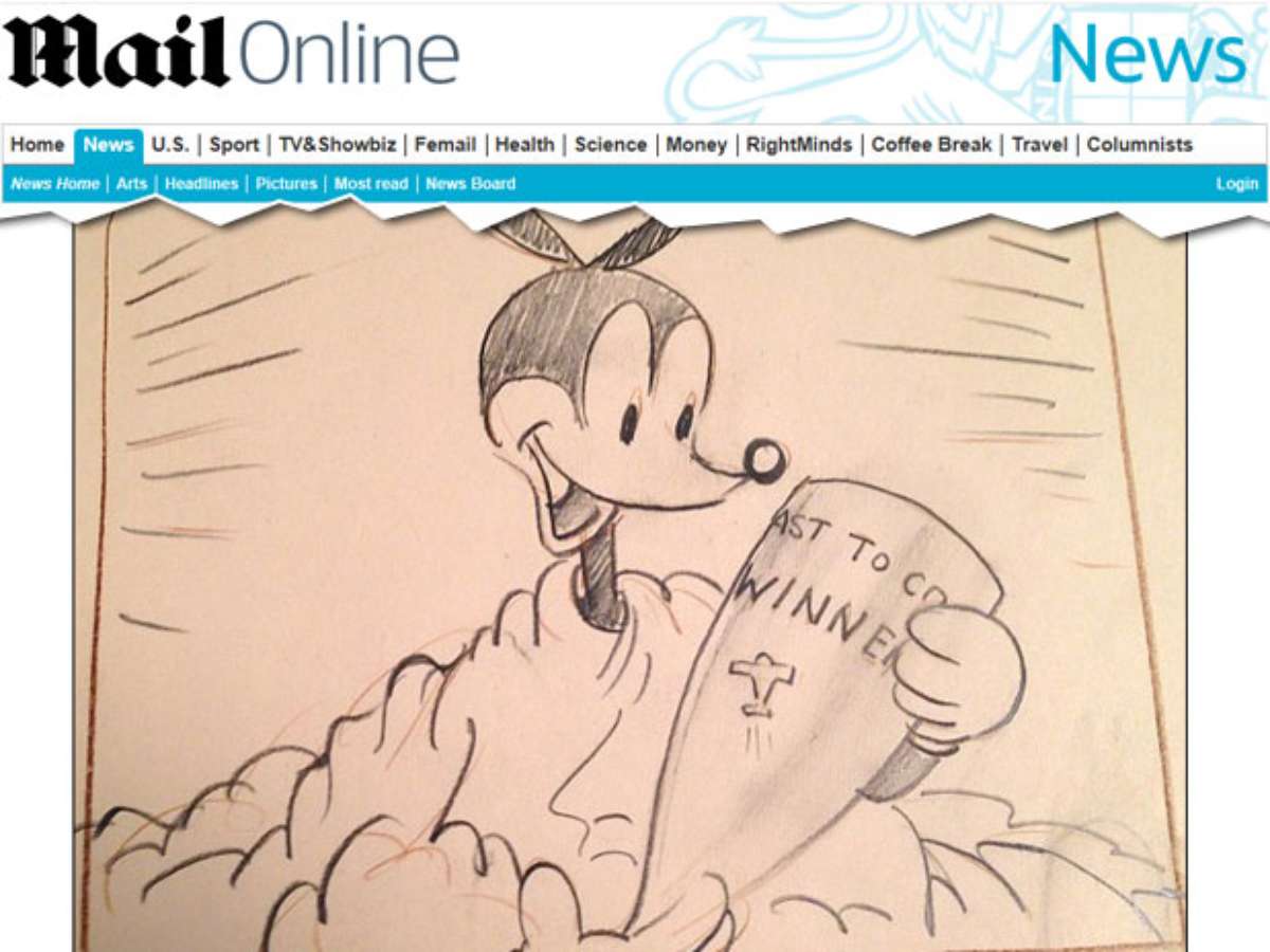 O primeiro desenho do cartunista Joseph Barbera, que abriu caminho para os famosos Tom e Jerry, Os Flintstones e Zé Colmeia, foi colocado à venda por 15 mil libras, segundo informações do Daily Mail. Lenda da animação, ele foi fundador (com William Hanna) da Hanna-Barbera.