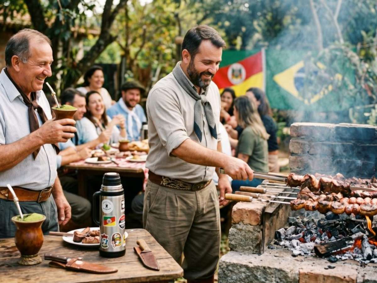 A origem desses símbolos remonta aos primórdios da ocupação do território gaúcho. Enquanto o chimarrão foi herdado dos povos indígenas, especialmente os guaranis, e transformado em um hábito de convívio social, o churrasco desenvolveu-se nas lidas de campo dos pampas, sendo a base da alimentação de tropeiros e estancieiros. O grupo de estudantes do Colégio Júlio de Castilhos que fundou o primeiro Centro de Tradições Gaúchas buscava justamente resgatar essas práticas que, com o tempo, deram origem a eventos de grande porte como a Ronda Crioula e a própria Semana Farroupilha.