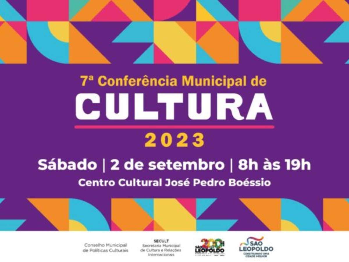 A Prefeitura de São Leopoldo, por intermédio da Secretaria Municipal de Cultura e Relações Internacionais (Secult), e o Conselho Municipal de Políticas Culturais estão preparando a 7ª Conferência Municipal de Cultura que será realizada no dia 2 de setembro, das 8h às 19h, no Centro Cultural José Pedro Boéssio. O processo participativo terá duas pré-conferências no mês de agosto: a primeira no dia 23 e a segunda no dia 29.