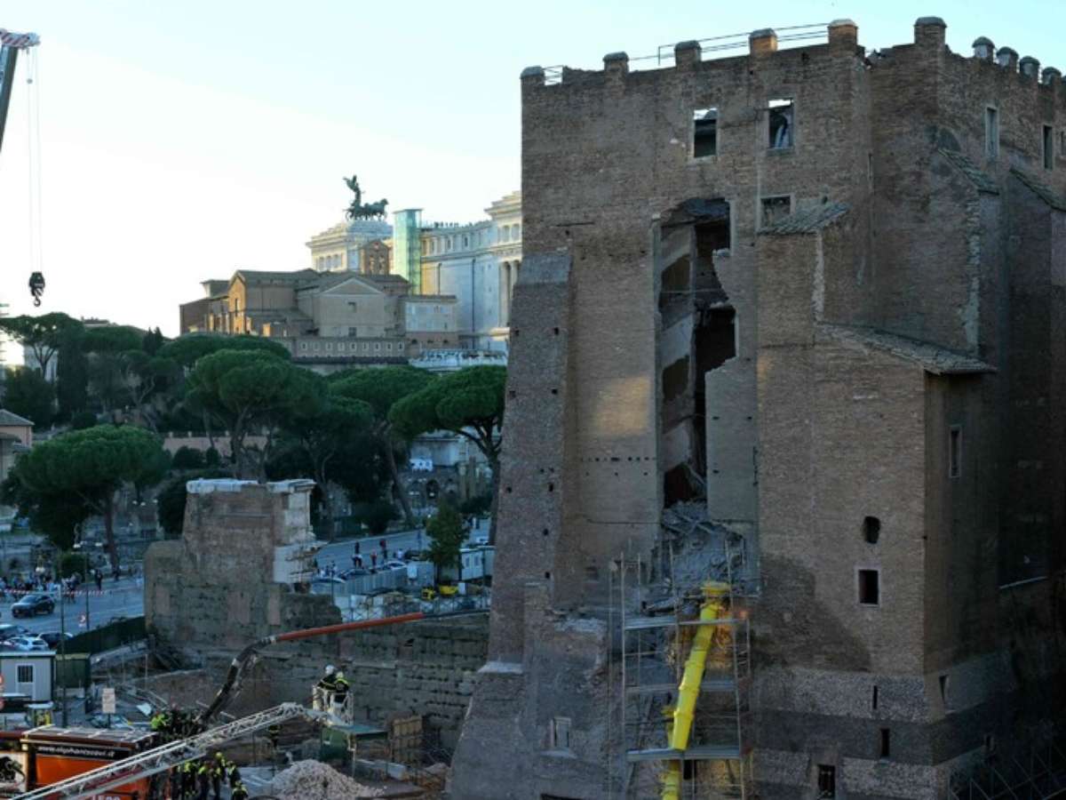 A Torre dei Conti, que domina o Largo Corrado Ricci, em Roma, e desabou parcialmente nesta segunda-feira (3), é considerada um marco da história medieval e do poder papal.