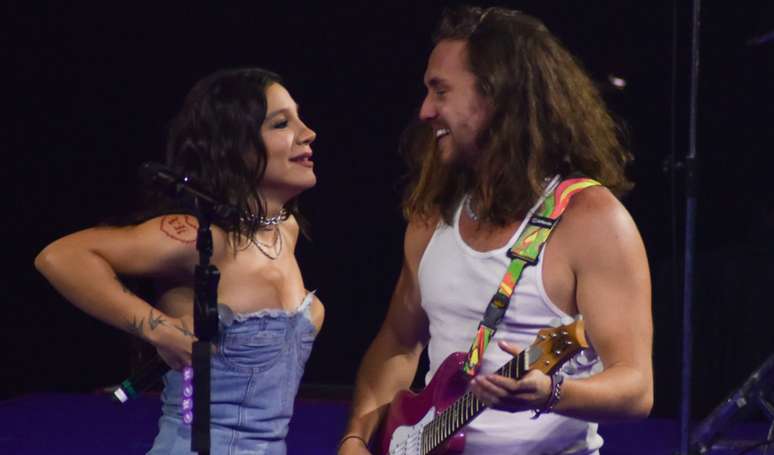 Priscilla Alcântara aumentou os rumores de um possível namoro como cantor Vitor Kley. A cantora e apresentadora fez dueto com o músico na gravação do DVD dele, "A Bolha Ao Vivo Em São Paulo", na casa de espetáculos Audio, neste domingo (23) à noite. Repórter de bastidor do "The Masked Singer Brasil", Priscilla surgiu com um vestido curto e justo de jeans destroyed sem alça exibindo suas várias tatuagens. Para completar o look, botas over the knee.