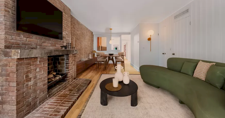 Localizado na Rua 50 Leste, número 351, o apartamento ocupa 88 metros quadrados de um edifício histórico de cinco andares, construído no início do século XX. O espaço conta com dois quartos, dois banheiros, uma sala de estar integrada à área de jantar, lareira decorativa e paredes de tijolos aparentes. Um dos grandes destaques do imóvel é o jardim privativo de 46 metros quadrados, acessado por portas de vidro — um verdadeiro luxo em Manhattan, onde espaços ao ar livre são raros e altamente valorizados.