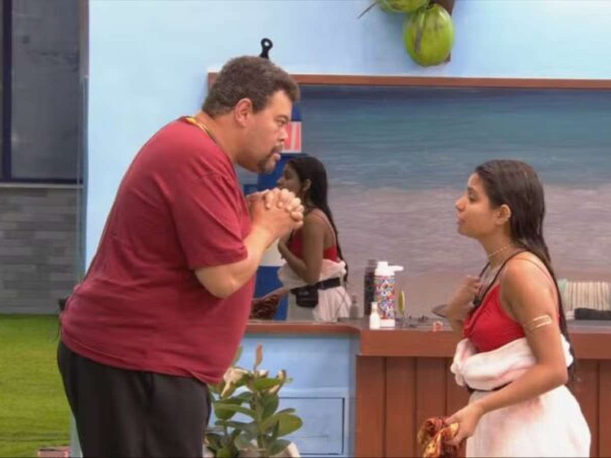 Visivelmente incomodado com as atitudes da sister, inclusive após o momento decisivo, o veterano disparou: "Você fala olhando para a câmera. Olha para mim". De acordo com Babu, a ideia da estudante de psicologia é forçar situações para fazer VT.