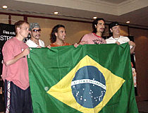 Depois de responderem as perguntas de jornalistas e fãs, o grupo seguiu para uma sessão de fotos com os cerca de trinta adolescentes sorteados pelas rádios cariocas. E quem fez a alegria dos repórteres foram os covers...