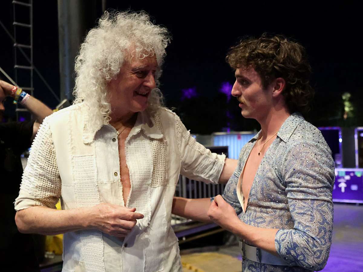 Durante a parada de Benson Boone na O2 Arena para sua American Heart World Tour, o cantor surpreendeu o público de Londres na terça-feira ao trazer Brian May ao palco para uma performance de bis de "Bohemian Rhapsody" e "Beautiful Things". É um reencontro para a dupla, que performou o cover do Queen e o maior hit de Boone no Coachella no início deste ano.