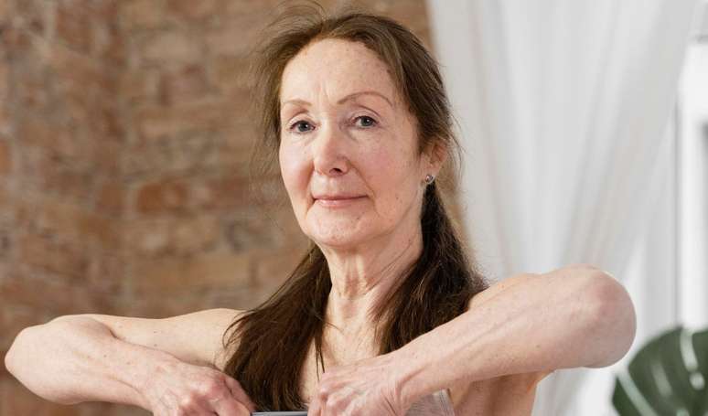 Exercícios específicos para bíceps, tríceps, ombros, peito e costas são os mais eficazes nesse caso. A especialista Bete Correia, instrutora de Pilates especializada em menopausa, propõe uma rotina ideal para fortalecer a parte superior do corpo durante a menopausa usando uma faixa elástica.