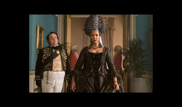 E não são só as peças de fora que importam. Para manter a postura e exaltar as melhores partes do seu corpo nos seus looks icônicos, a Rainha Charlotte precisa se submeter a usar as vestimentas disponíveis na época como roupa de baixo. Isso significa que ela usa peças íntimas torturantes, como o espartilho feito de osso de baleia.