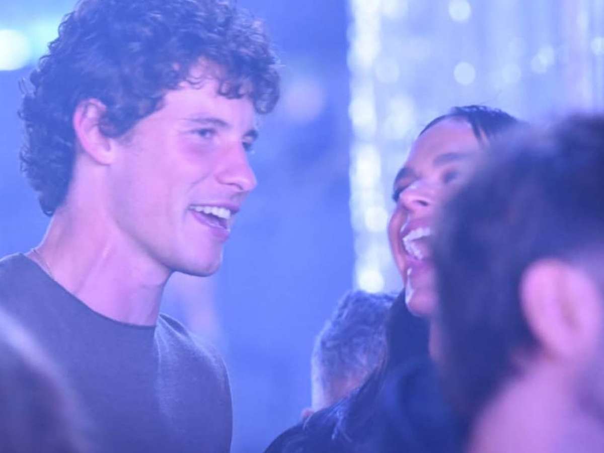 Bruna Marquezine e Shawn Mendes foram fotografados juntinhos tendo conversa e se divertindo durante show de Dua Lipa neste sábado (15)