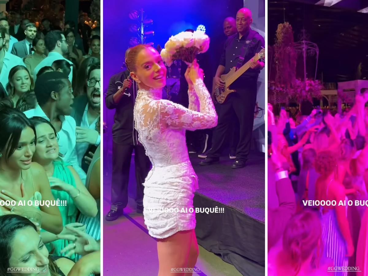 O momento foi convocado por Thiaguinho, uma das atrações da festa, que chamou todos para a frente do palco. “Solteiras que querem casar”, disse ele. Bem na linha de frente, Marquezine entra em cena. Nas imagens, que foram publicadas nos stories de Giovanna, é possível ver a atriz dando um gole do drinque e ajeitando o vestido, se preparando para tentar pegar. No entanto, não foi desta vez. O buquê foi jogado para trás e o “próximo a se casar” foi um convidado homem