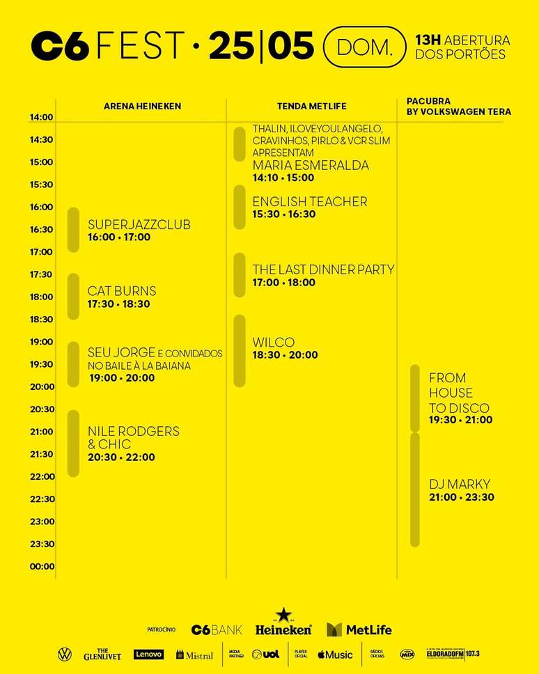 +++ LEIA MAIS: C6 Fest 2025 anuncia line-up completo com Nile Rodgers, Seu Jorge, Pretenders e mais