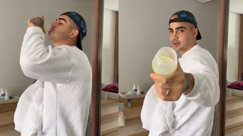 Caio Cabral prova leite materno da esposa e divide opiniões dos seguidores: 'Nojento'