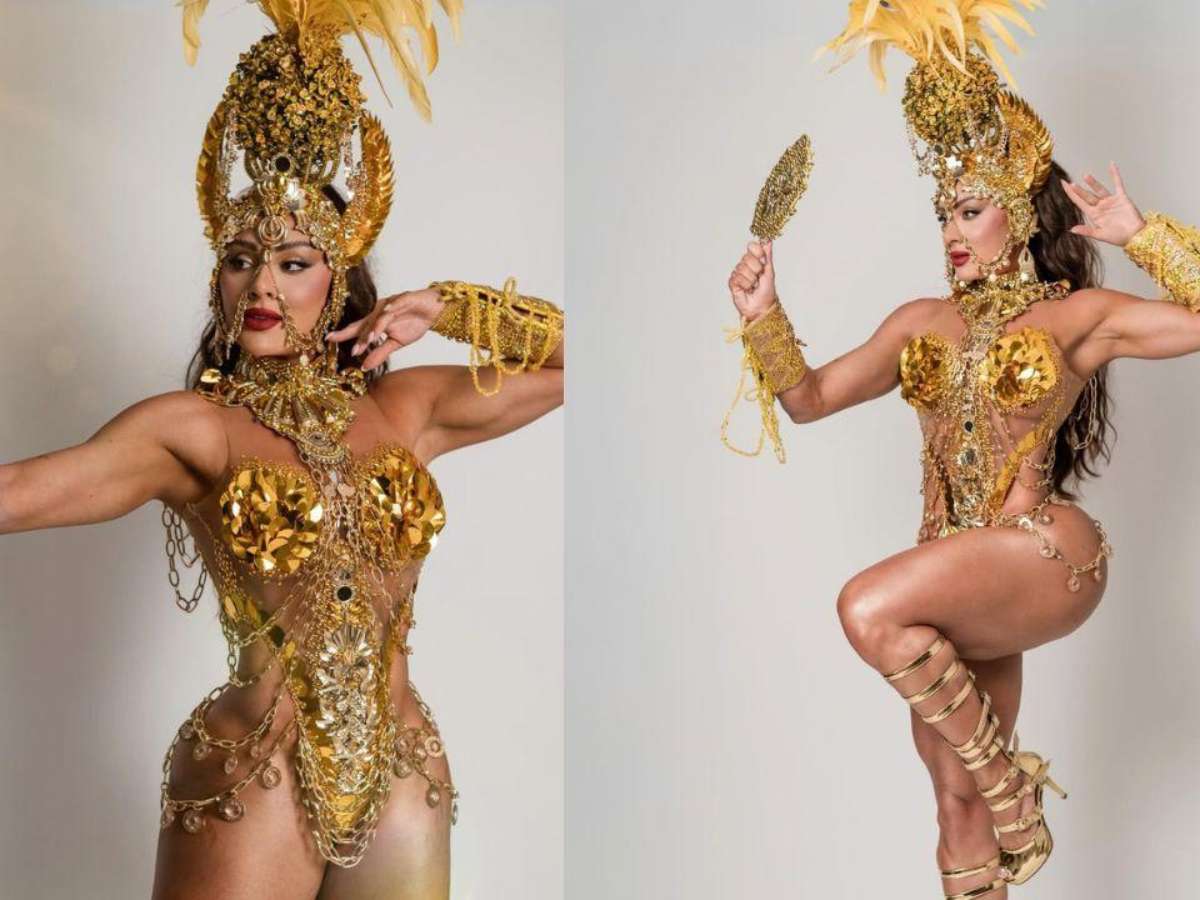 Representar Oxum exige uma estética dourada, fluida e majestosa. "Oxum é maravilhosa e é uma honra representar esse Orixá na avenida. A fantasia está bem luxuosa e não é pequena, posso dizer que vai iluminar o Anhembi", revelou a Rainha de Bateria.