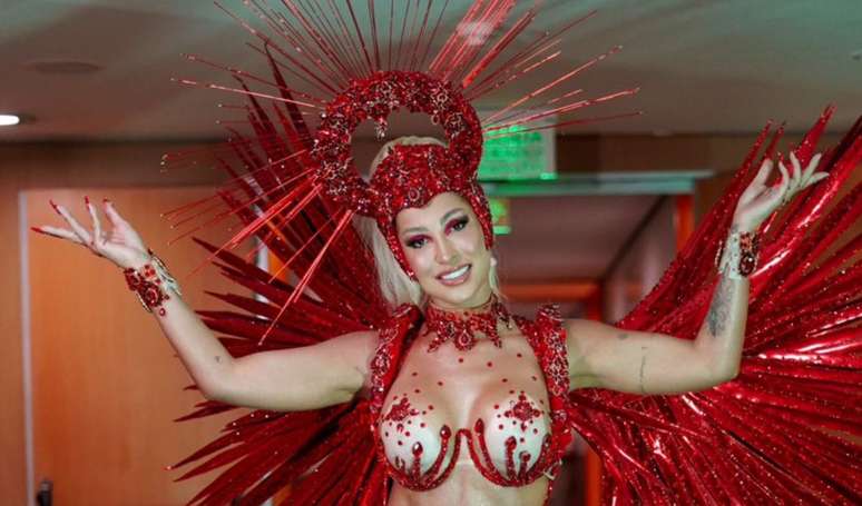 Carnaval 2023: rainha de bateria da X-9, Ingrid Mantovani arrasa em look all red com 30 mil cristais