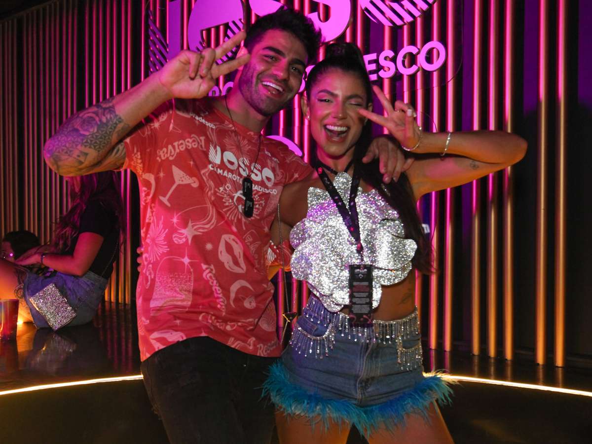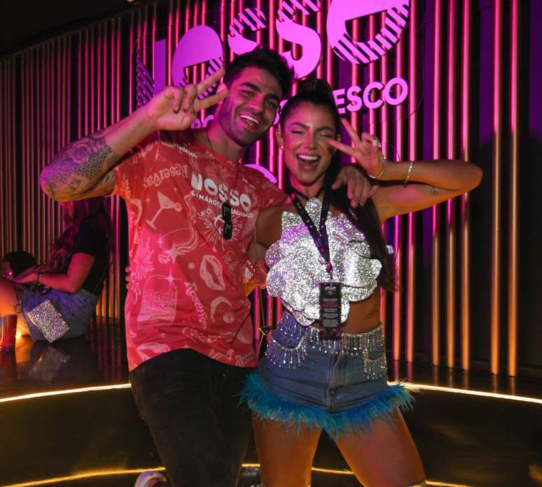 Hariany Almeida e o noivo DJ Netto aproveitaram camarote na Sapucaí na noite de sábado, 18