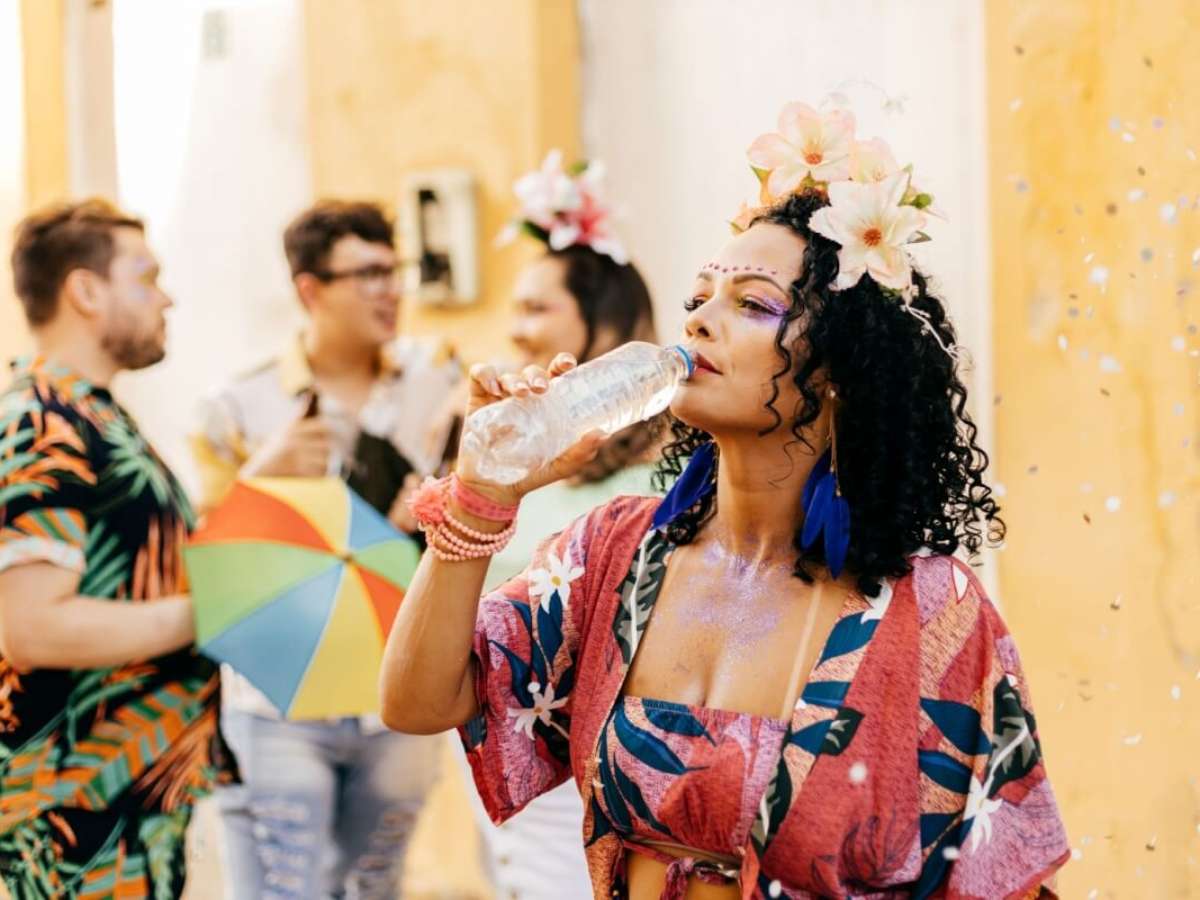 A hidratação também interfere diretamente no rendimento físico. A desidratação aumenta a sensação de cansaço, reduz a resistência e pode causar dor de cabeça e mal-estar. Jáder Guerra orienta que a ingestão de líquidos comece horas antes de sair de casa, não apenas durante a festa. Intercalar bebidas alcoólicas com água é uma estratégia importante, assim como incluir água de coco ou bebidas com eletrólitos em dias de muito calor, o que ajuda na reposição de sais minerais perdidos com o suor.
