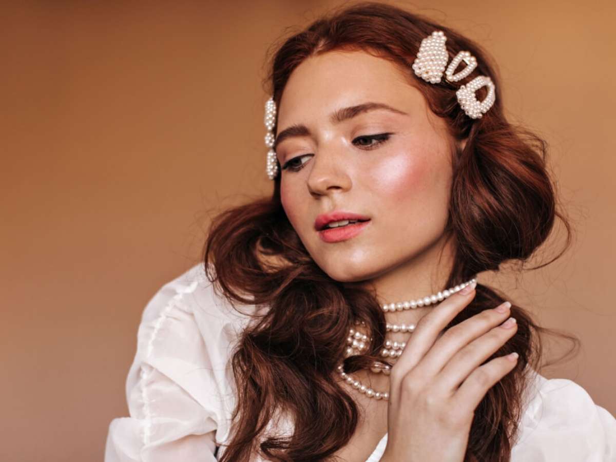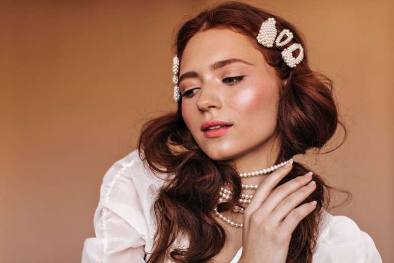 Pérolas, strass ou pedrarias pequenas surgem como uma alternativa delicada e fashion, oferecendo uma finalização sofisticada e uma ótima opção para festas à noite. Aplicações pontuais iluminam sem pesar, funcionando tanto em estilos presos quanto soltos.