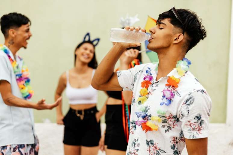 Beber água ao longo do dia é fundamental, especialmente em dias de calor intenso e durante o consumo de álcool. "A recomendação é intercalar o consumo de bebidas alcoólicas com água e não esperar a sede aparecer para se hidratar", explica o gastroenterologista.