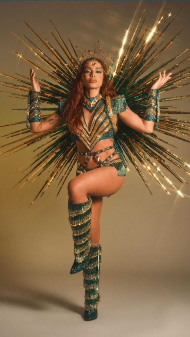 Anitta com o look inspirado na Mocidade para os Ensaios de 2024 - Reprodução: Redes Sociais