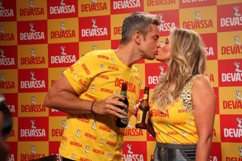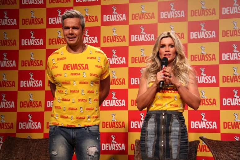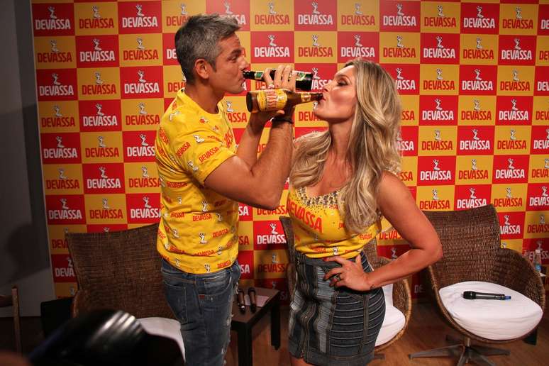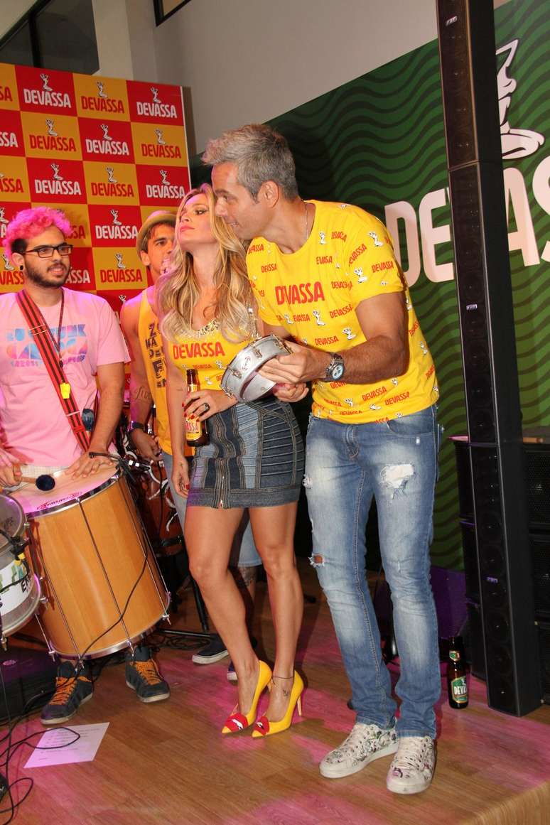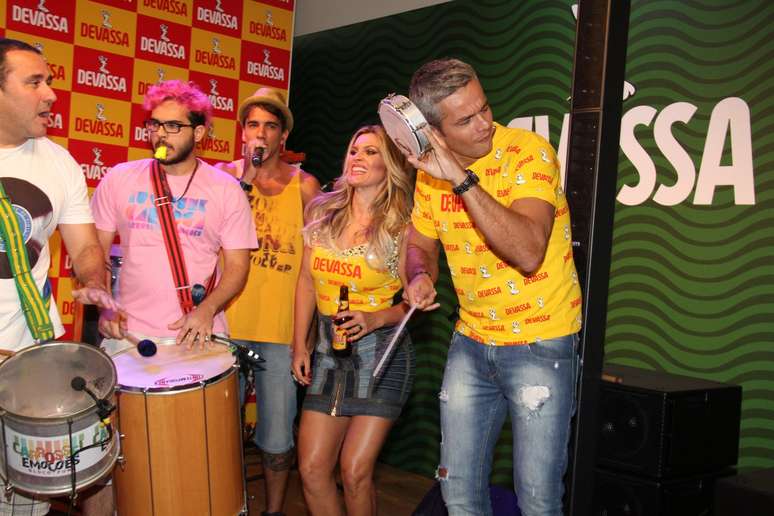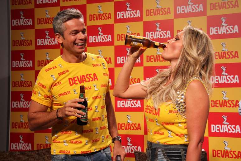 Enquanto não decide se este será seu último ano na Sapucaí, a Devassa apresentou Flávia Alessandra e Otaviano Costa como seu casal símbolo para 2015. "Nosso estilo de vida e casal tem tudo a ver com a carioquice", disse Otaviano. "Nossa relação tem essa irreverência", acrescentou Flávia, que já chegou ao evento de divulgação do espaço nesta terça-feira (10) com a camiseta customizada por Walério Araújo. Em 2014, Grazi Massafera foi a musa da área vip.