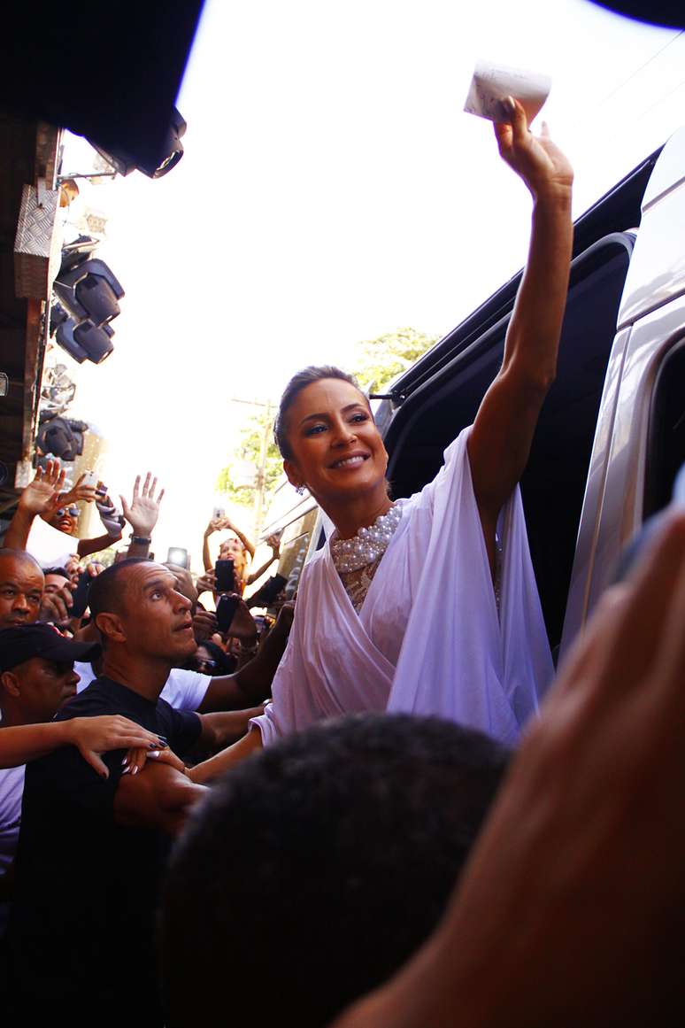 Uma das atrações mais esperadas do Carnaval de Salvador, Claudia Leitte causou alvoroço ao chegar ao circuito Barra/Ondina nesta terça-feira (17). A cantora vai comandar o bloco Largadinho, que estava previsto para sair às 18:00 pelo horário local (uma hora a menos em relação ao horário de Brasília), mas só deve começar a andar por voltas das 19:00 (horário local). A mudança de horário só aumentou a expectativa dos fãs, que foram ao delírio com a chegada da cantora.