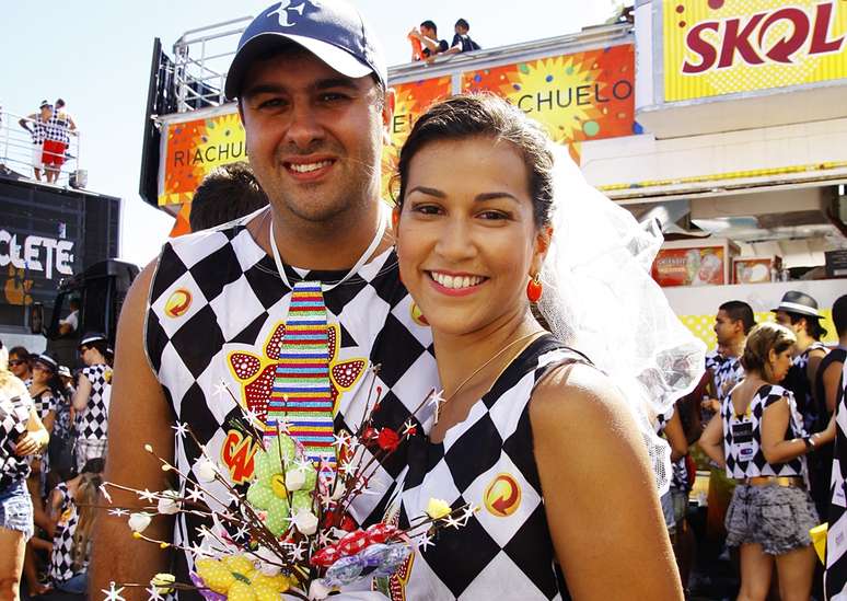 Para contrariar aqueles que acreditam que casamento e Carnaval não combinam, ela resolveu cair na folia vestida de noiva