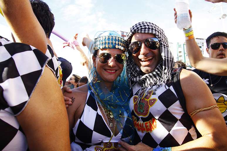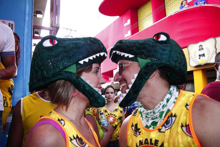 Casal mostrou que curte o bloco Camaleão dos pés à cabeça