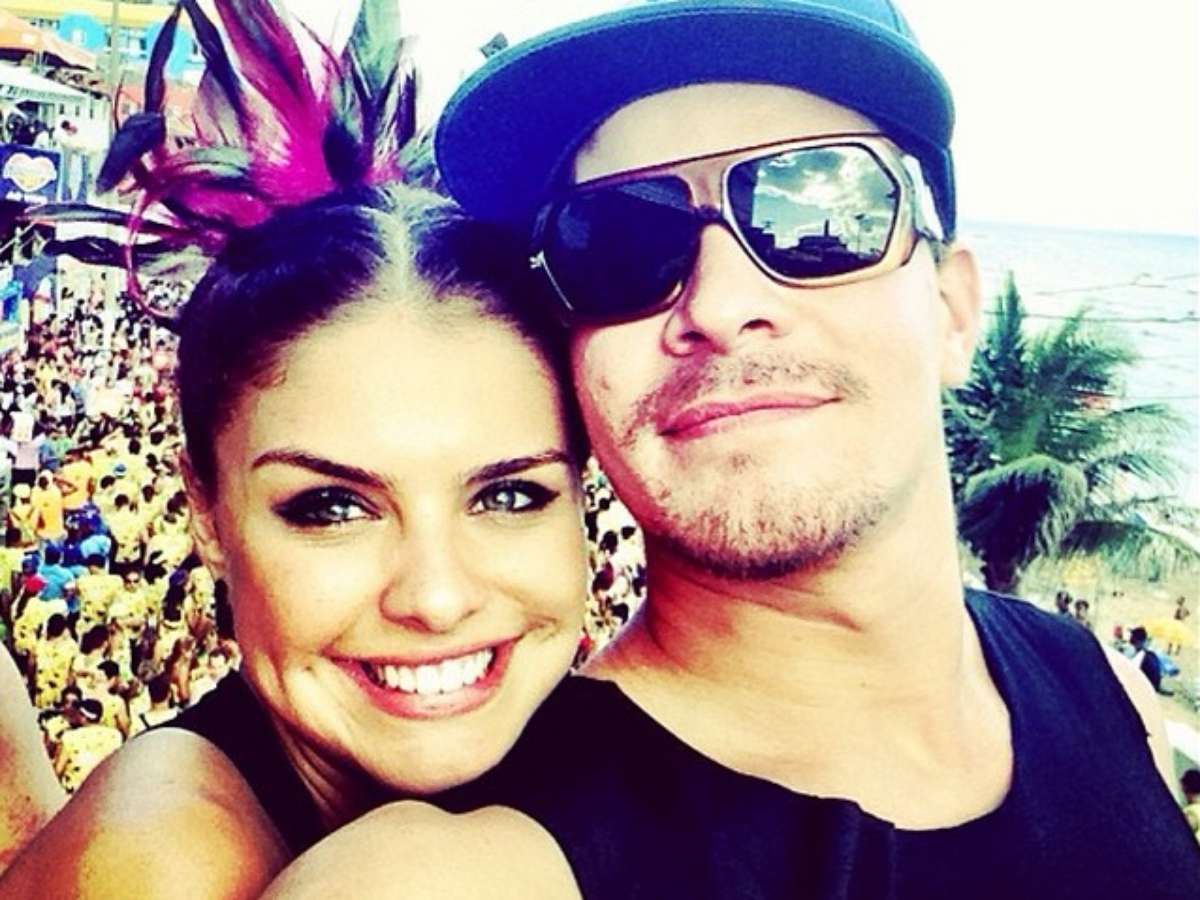 Thiago Martins e Paloma Bernardi curtiram juntos o Carnaval de Salvador na tarde deste domingo