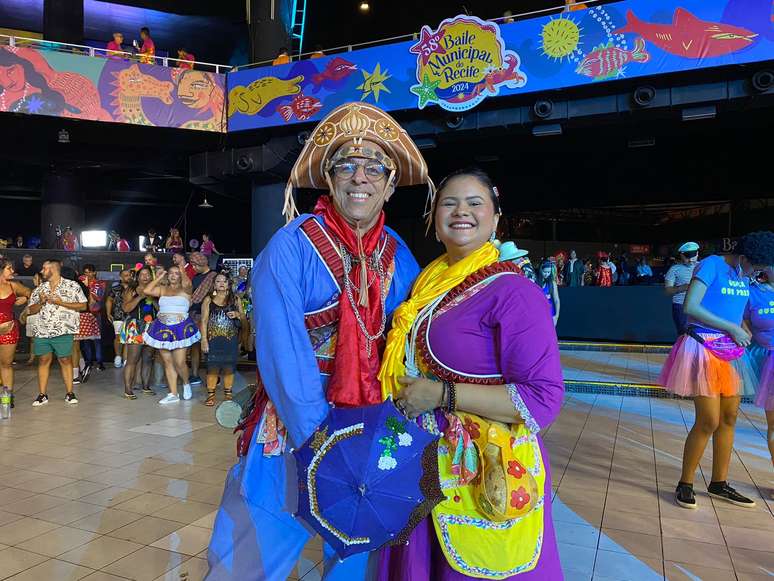 Gil Silva e Flávia Vieira, casados, moram em Serra Talhada, Pernambuco e sempre frequentam o tradicional Baile Municipal do Recife, como nesta última edição da noite deste sábado. Lá foram homenageados personagens da história e do imaginário popular pernambucano.
