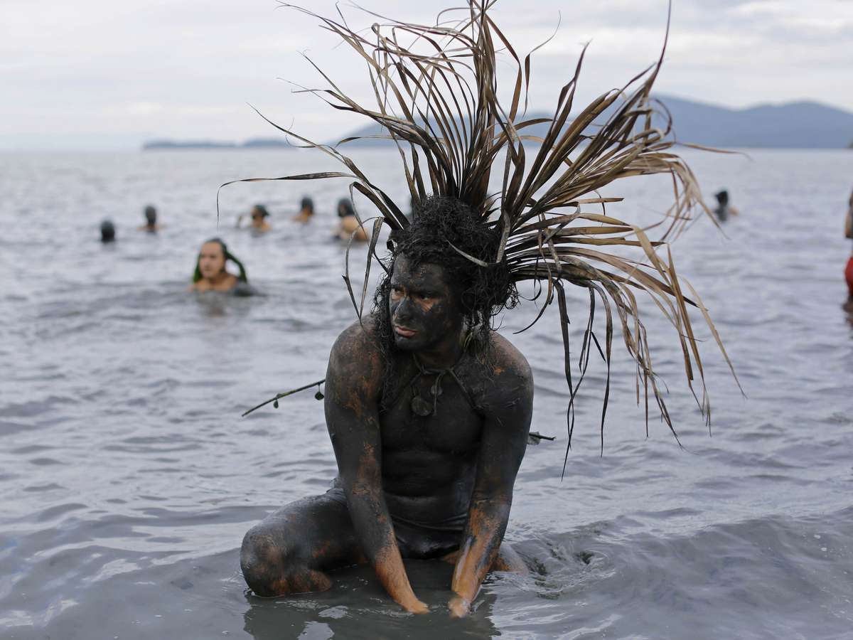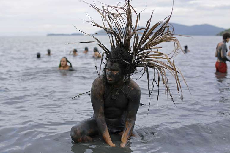 O advogado Renato Delavia, 37, concorda que a lama é libertadora. “Minha filha está olhando para mim como se eu fosse uma pessoa completamente diferente, tipo um monstro”, disse, com o branco dos olhos e os dentes de destacando em contraste com o restante do rosto. “Ele está estranho”, apontou a filha Valentina, de 5 anos.