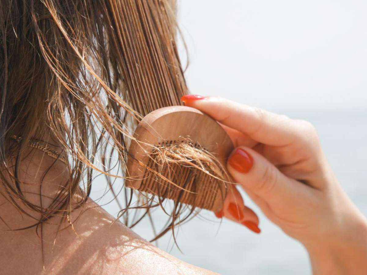 Procure produtos com proteção solar específica para as fibras capilares. Reaplique sempre que sentir o cabelo seco após o mergulho.