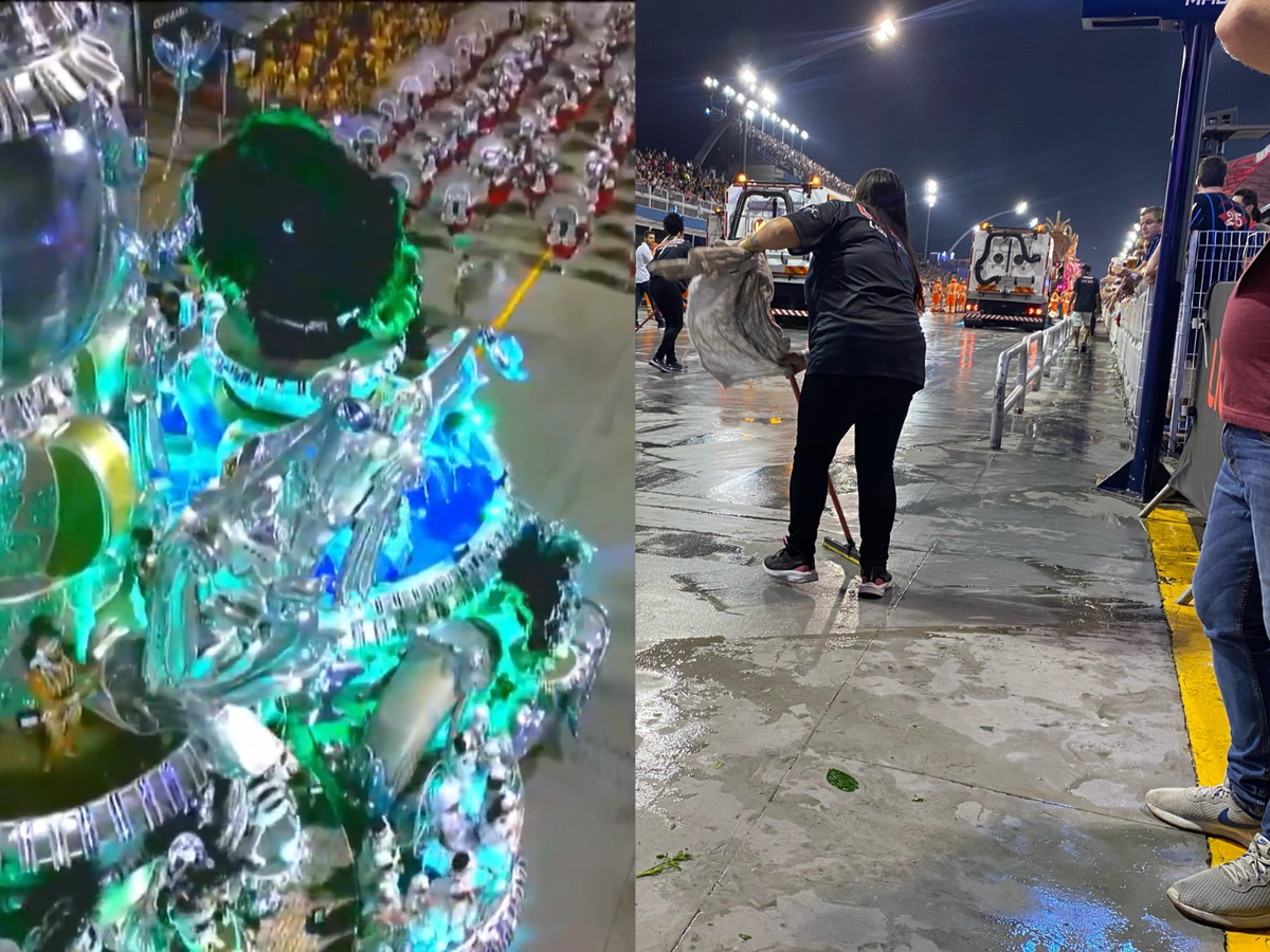 Carnaval: Carro da Mocidade Alegre deixa pista do sambódromo molhada