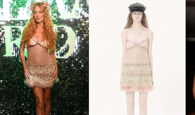 A peça é avaliada em € 8.900, cerca de R$ 55 mil na cotação atual, e já aparece como esgotada no Brasil! De acordo com informações do site oficial da grife, a vestimenta é o modelo Tulle Illusione Embroidered Short Dress, confeccionada em tule com efeito ilusão e bordados elaborados. O vestido curto, em tom rosado com transparência estratégica, reúne aplicações minuciosas e acabamento delicado, destacando o caráter artesanal da criação.