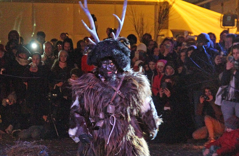 Na performance, o diabo é representado por uma figura de cabra com 7 peles e tridente, despertando medo e superstição nos foliões ao correr pelas ruas, acompanhado por um cortejo simbolizando o desconhecido e o inverno.