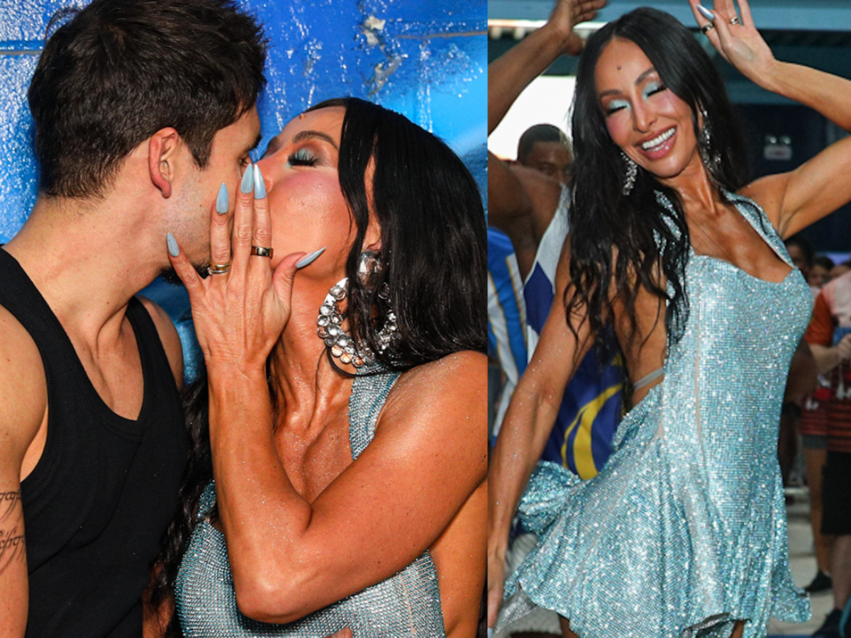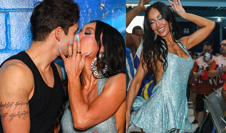 Apresentadora aposta em look brilhante, se joga no samba e protagoniza momento quente com Nicolas Prattes! Veja fotos: