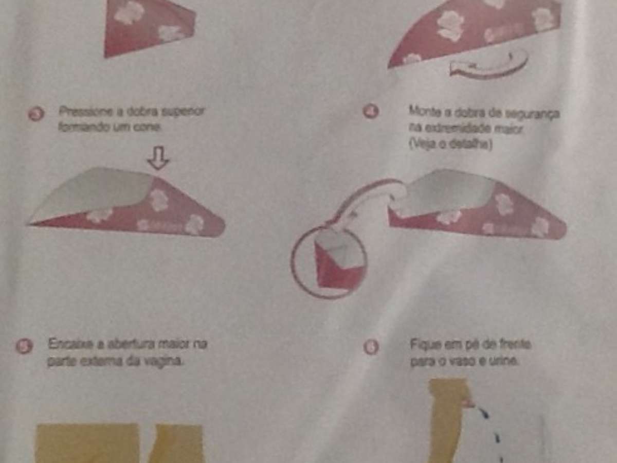 O produto é distribuído gratuitamente e a parte de trás do pacote traz instruções em detalhes de como usá-lo. É preciso desdobrá-lo, montar a dobra de segurança, encaixar na abertura da vagina e fazer xixi de pé. "Mulher tem sempre problemas para sentar em vasos muito sujos. Esse produto evita bactéria. Ninguém, até agora, recusou quando eu ofereci".