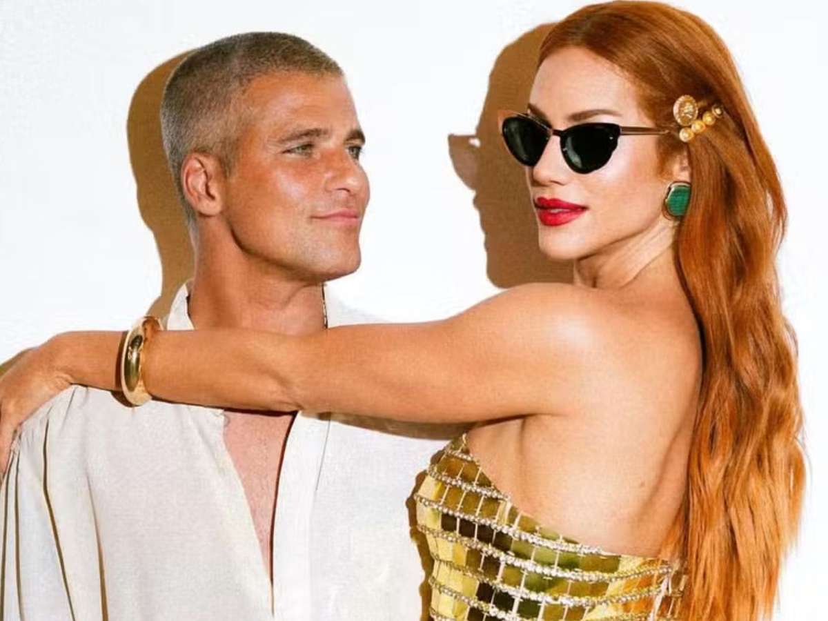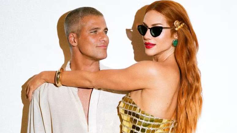 Gio aparece usando um vestido tubinho bem colado ao corpo e coberto por lantejoulas douradas. Ela ainda combinou o visual com óculos escuros, um acessório dourado no cabelo e brincos verdes. Já o ator optou por uma camisa de linho aberta e uma calça off white. "Meu gato, meu parceiro, meu amor". comentou a famosa.