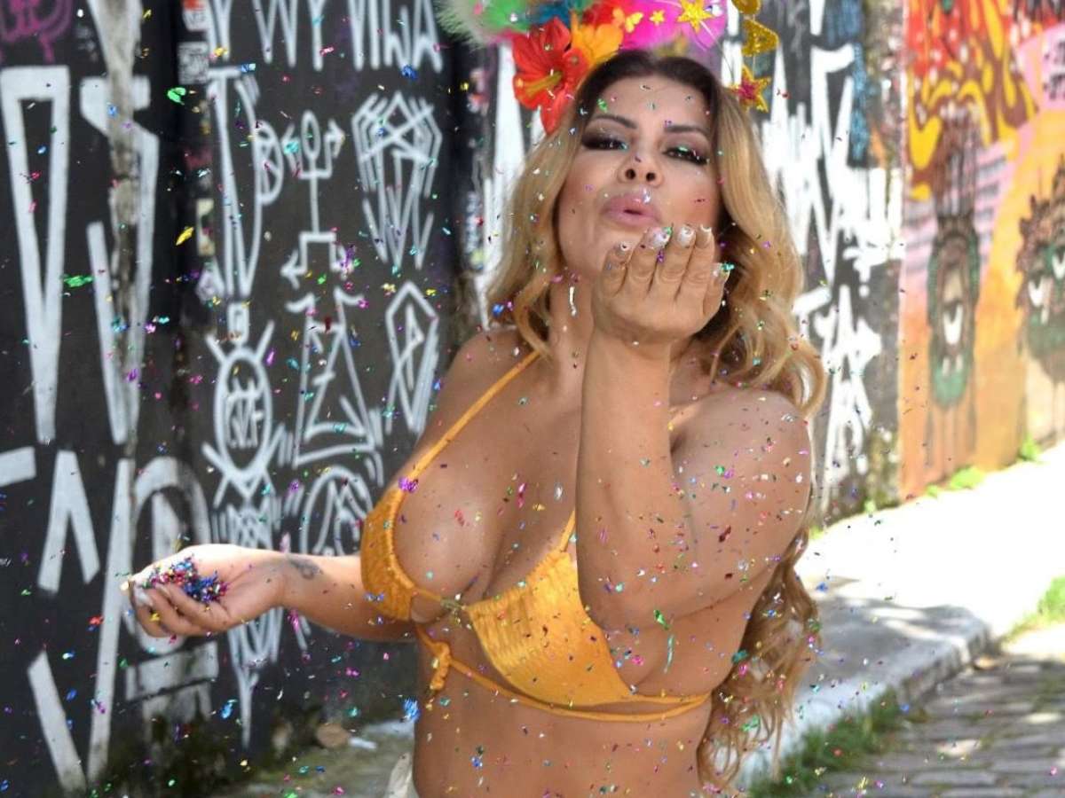 A modelo e ex-Banheira do Gugu Bruna Ferraz vai desfilar em 35 dos 579 blocos de carnaval que acontecem em São Paulo. Aos 42 anos, a empresária afirmou que sua maratona começa neste sábado, 3.