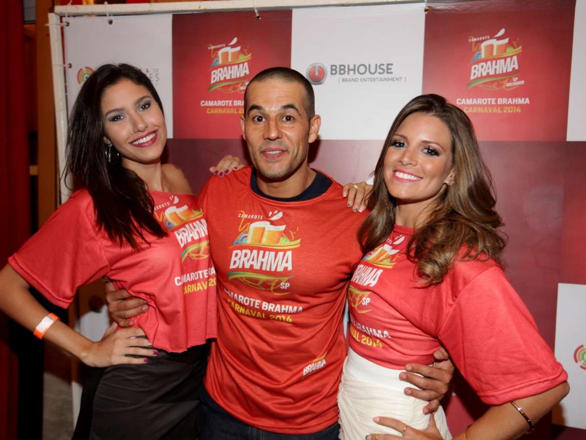 Na noite da última quarta-feira (5), famosos curtiram um esquenta do camarote Bar Brahma, Na foto, os ex-BBBs Tessália e Alex posam com a atriz Renata Del Bianco